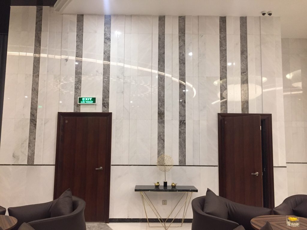 Ốp đá cổng trào đá xuyên sáng đối xứng